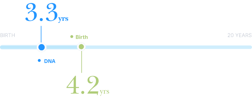 DNA age is 0.9 years younger than birth age